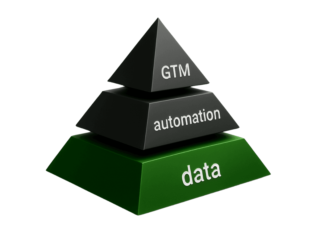 We start with a single source of truth in data, followed by automation, and finalize with coordinated go-to-market motions.